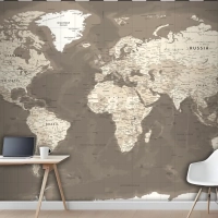 Dünya Haritası Vintage Siyasi Kahverengi Duvar Kağıdı