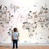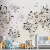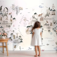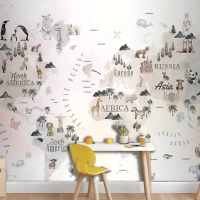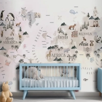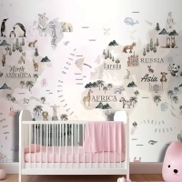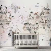 Dünya Üzerinde Sevimli Hayvanlar Çocuk Odası Duvar Kağıdı