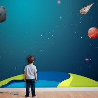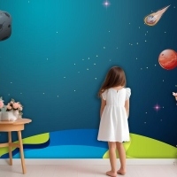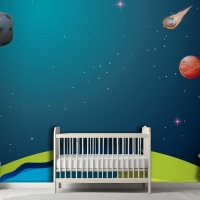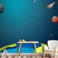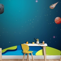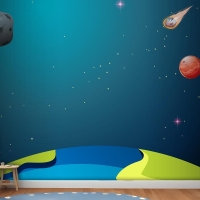 Dünya Ve Gezegenler Sahneleri Çocuk Odası Duvar Kağıdı