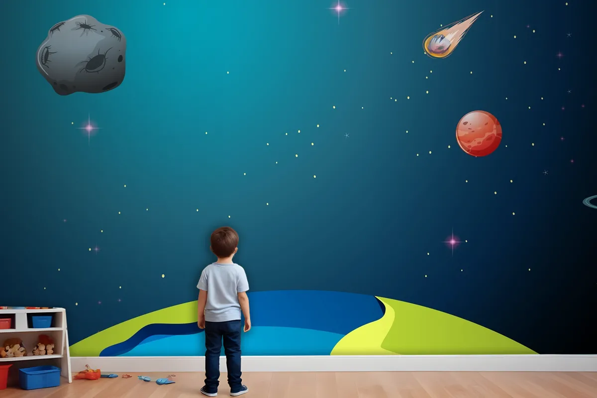 Dünya Ve Gezegenler Sahneleri Çocuk Odası Duvar Kağıdı