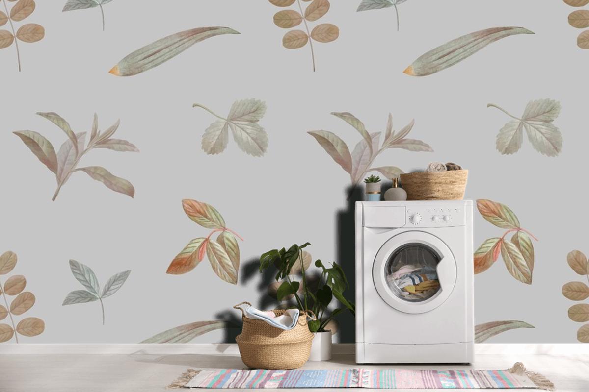 Duvar Kağıdı Gri Arka Planda Yeşillik Dikişsiz Desen