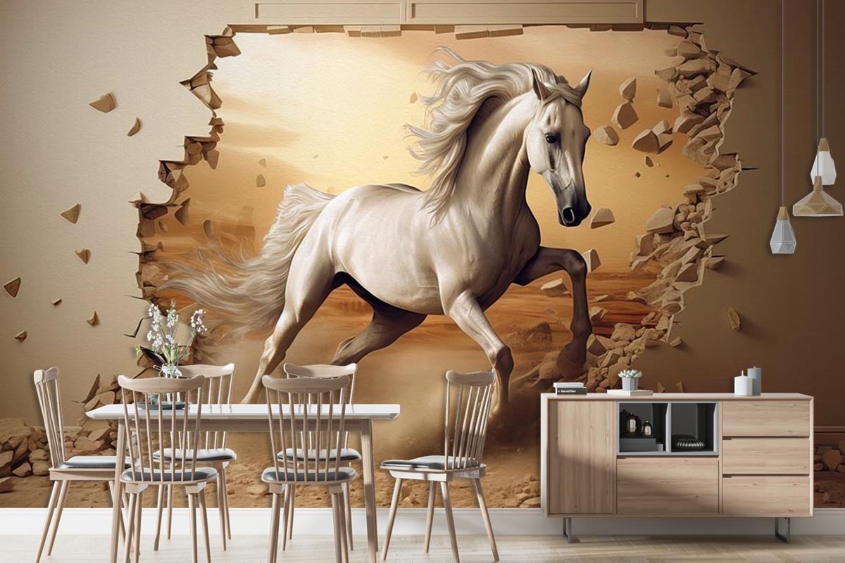 Duvarı Yıkıp Geçen At 3D Duvar Kağıdı