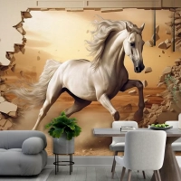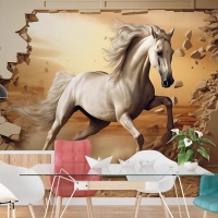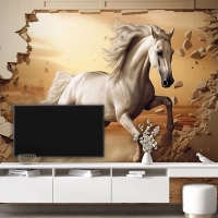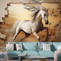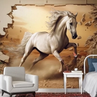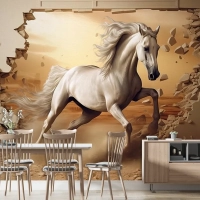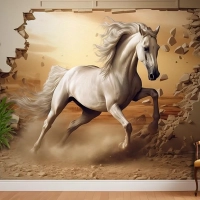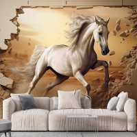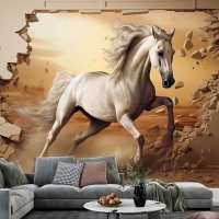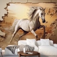 Duvarı Yıkıp Geçen At 3D Duvar Kağıdı