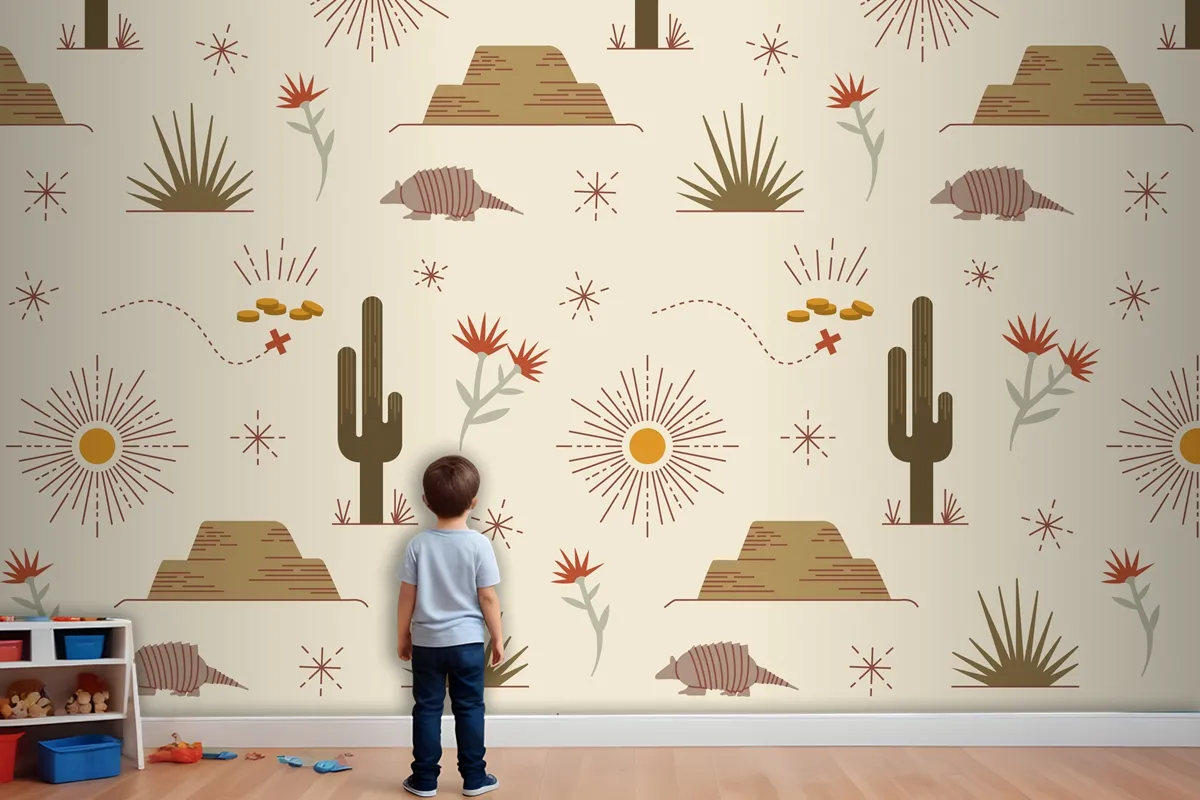 Düz Batı Desen Tasarımı Çocuk Odası Duvar Kağıdı