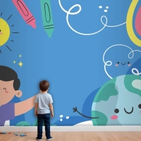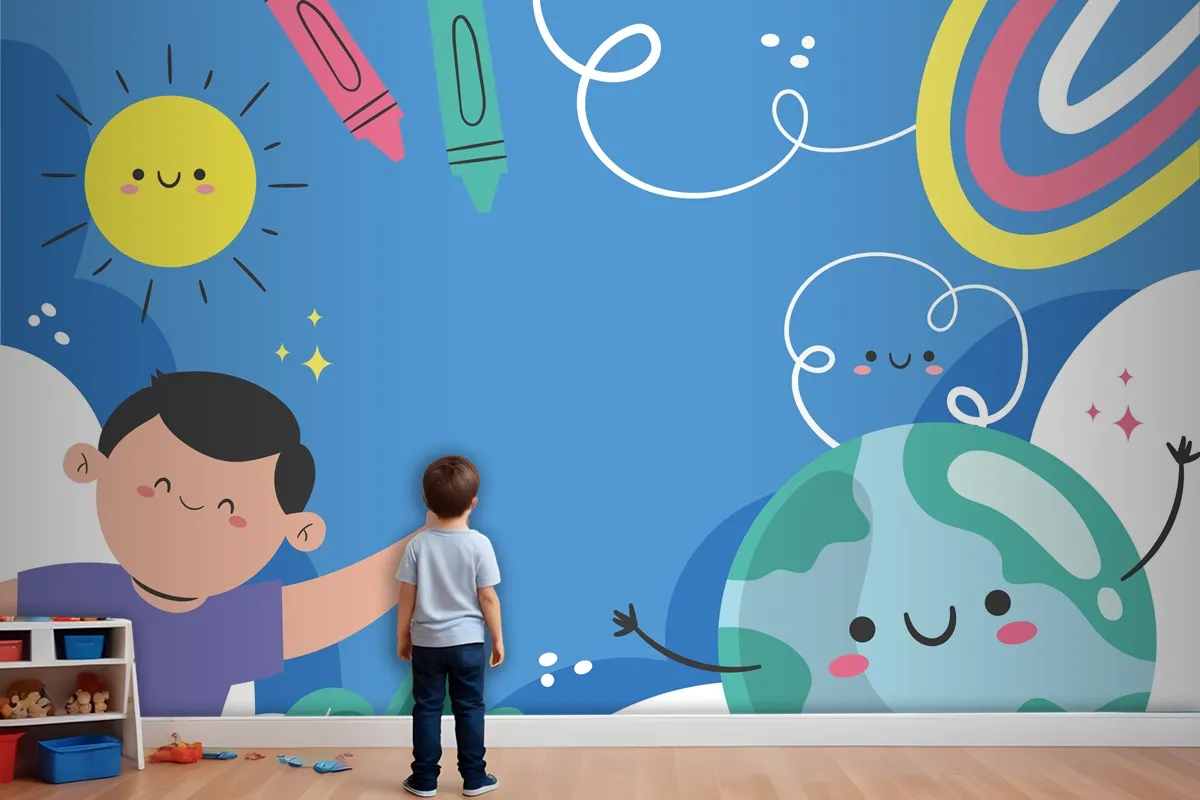 Düz Dünya Çocuk Günü Arka Plan Çocuk Odası Duvar Kağıdı