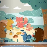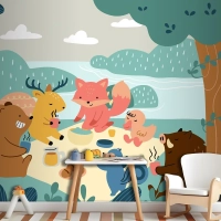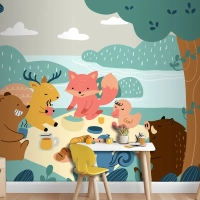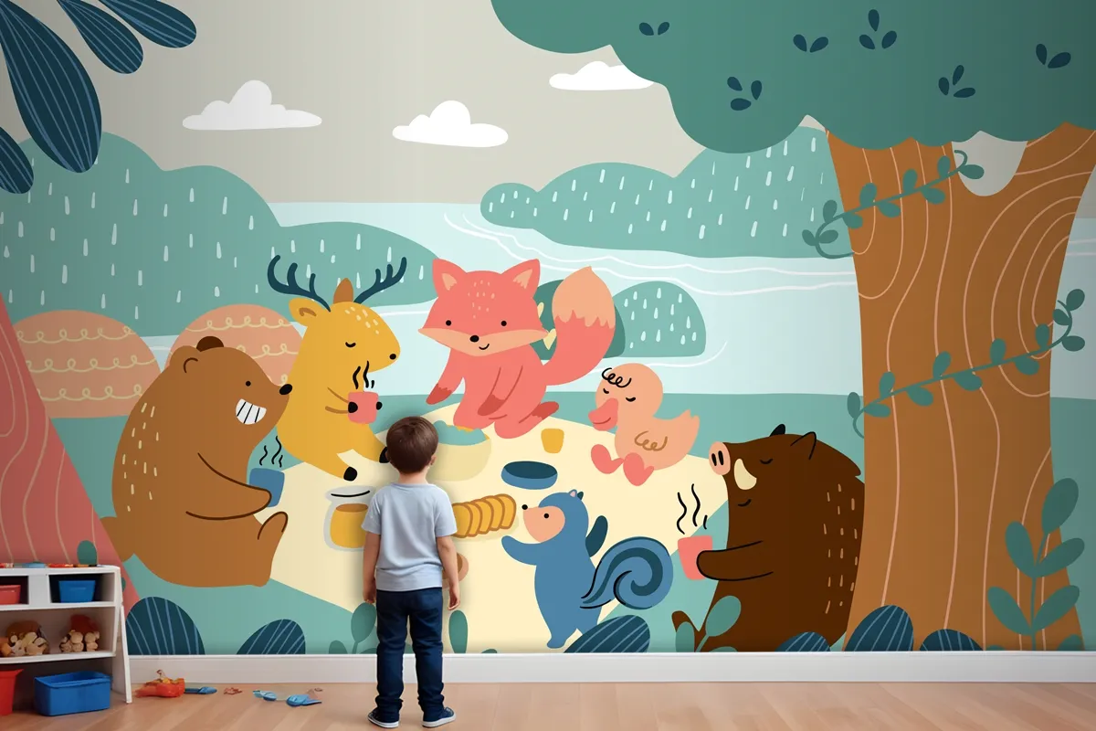 Düz Dünya Hayvan Günü Çocuk Odası Duvar Kağıdı