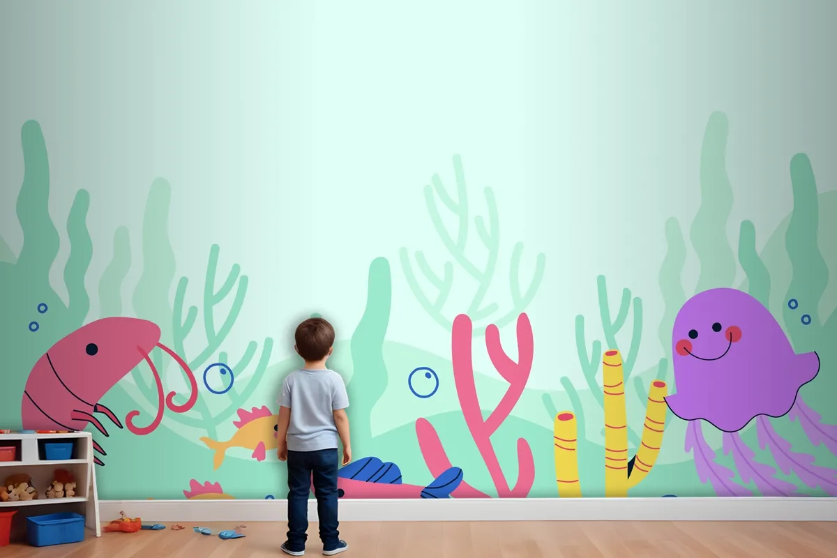 Düz Dünya Okyanuslar Günü Arka Plan Çocuk Odası Duvar Kağıdı