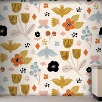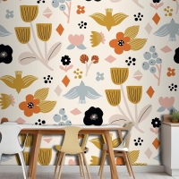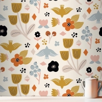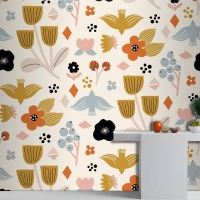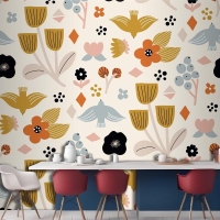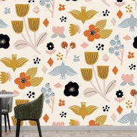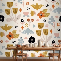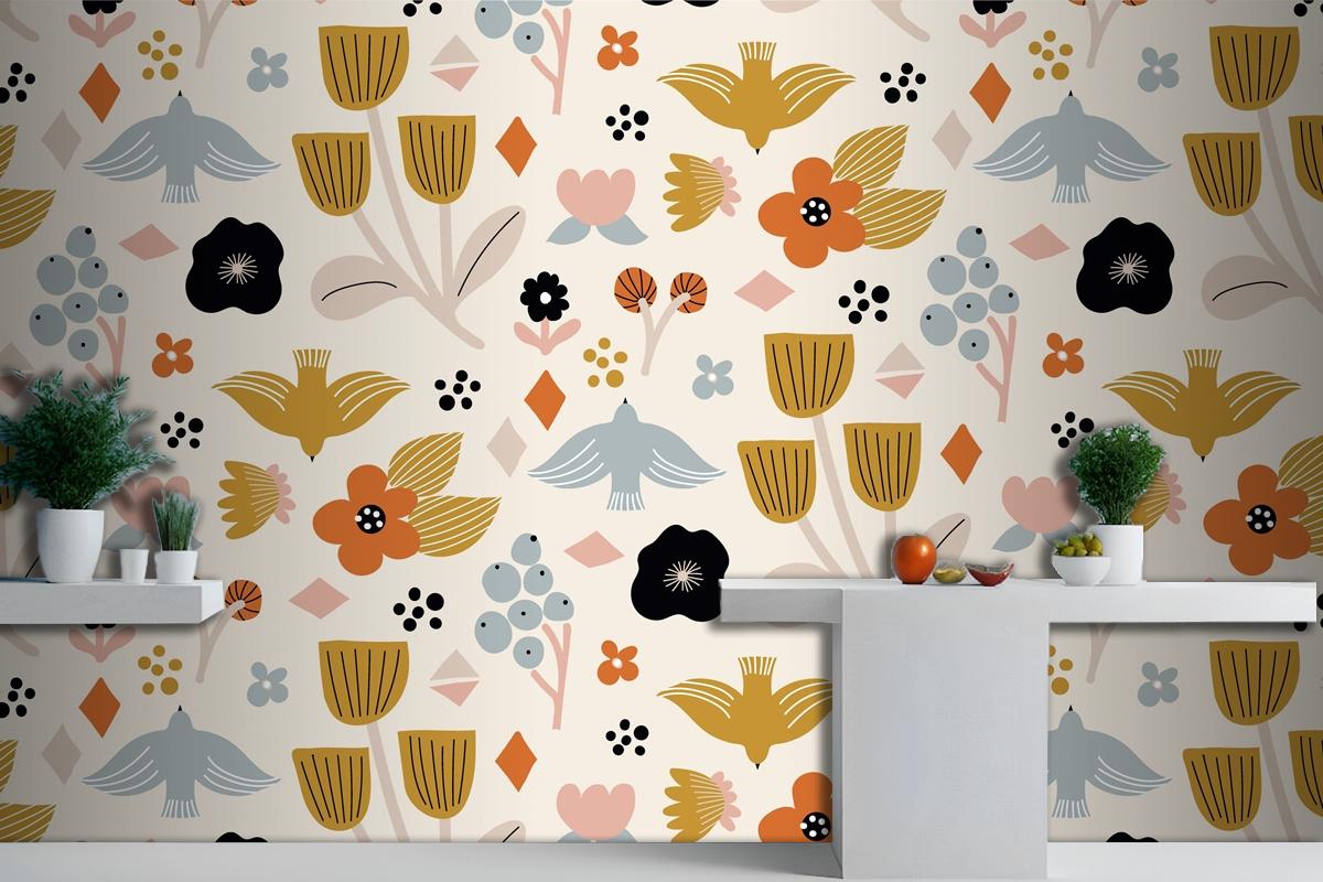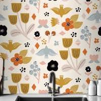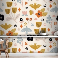 Düz İskandinav Tasarım Deseni Mutfak Duvar Kağıdı