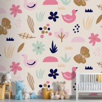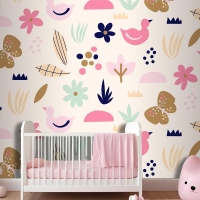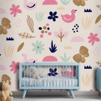 Düz İskandinav Tasarım Desenli Çocuk Odası Duvar Kağıdı