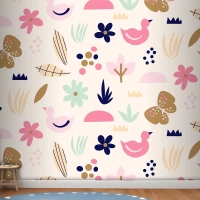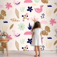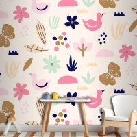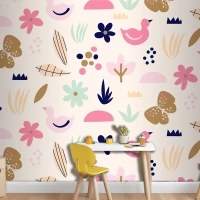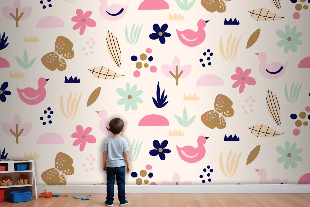 Düz İskandinav Tasarım Desenli Çocuk Odası Duvar Kağıdı