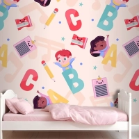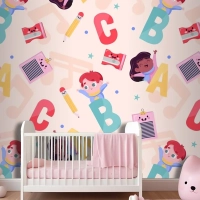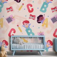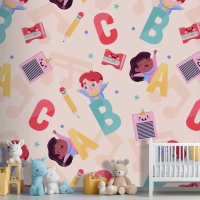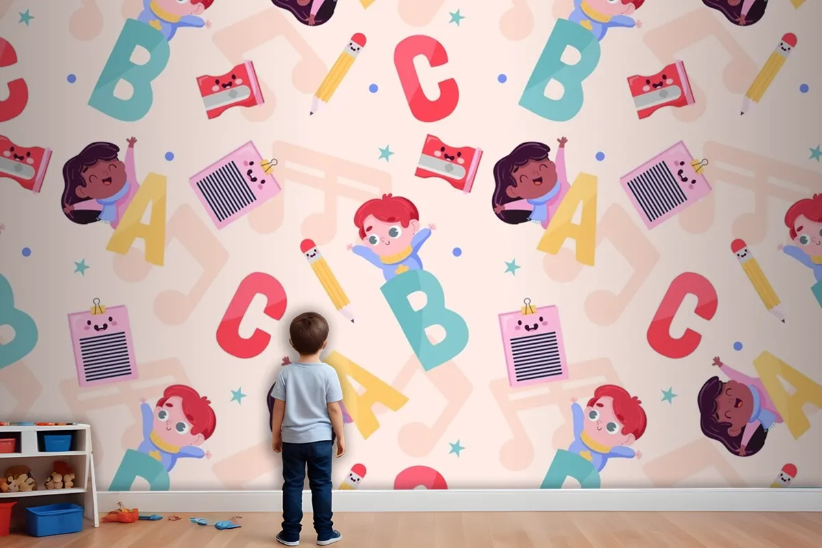 Düz Okula Dönüş Desen Tasarımı Çocuk Odası Duvar Kağıdı
