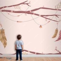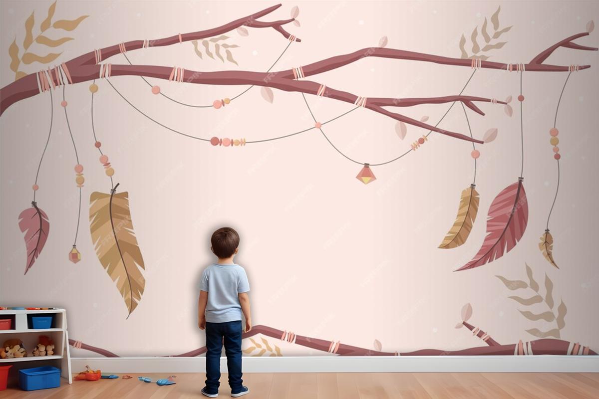 Düz Tasarım Boho Arka Plan Çocuk Odası Duvar Kağıdı