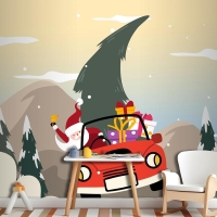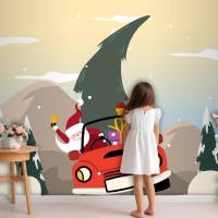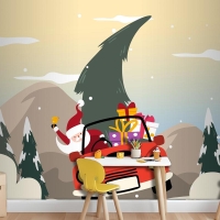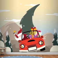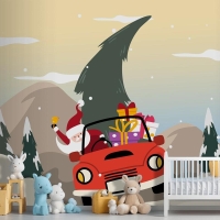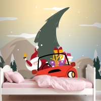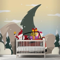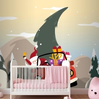 Düz Tasarım Çocuk Odası Duvar Kağıdı Duvarında Noel Arkaplanı