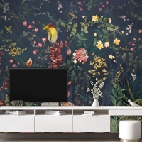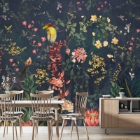 Egzotik Kuşlar Ve Çiçeklerle Vintage Çiçekli Duvar Kağıdı