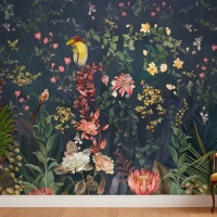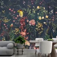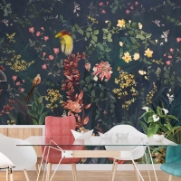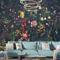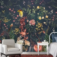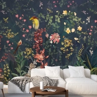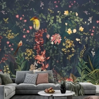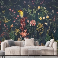 Egzotik Kuşlar Ve Çiçeklerle Vintage Çiçekli Duvar Kağıdı