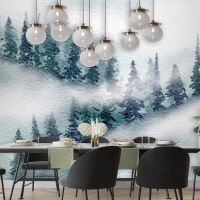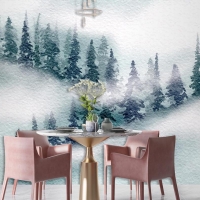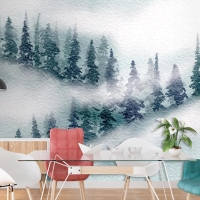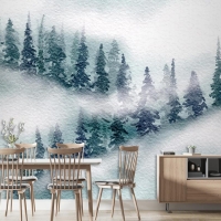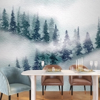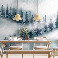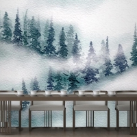 El Boyalı Japon Temalı Suluboya Manzara Yemek Odası Duvar Kağıdı