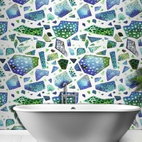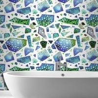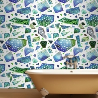 El Boyalı Renkli Terrazzo Desenli Banyo Duvar Kağıdı