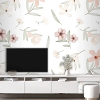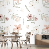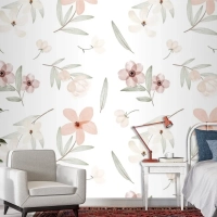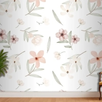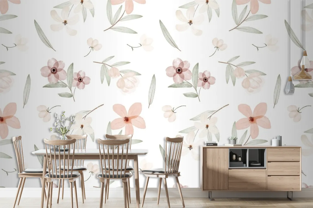 El Boyalı Suluboya Botanik Desenli Duvar Kağıdı