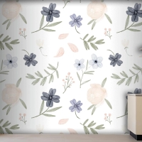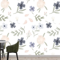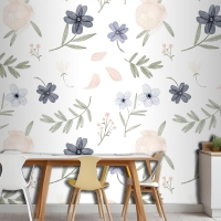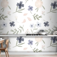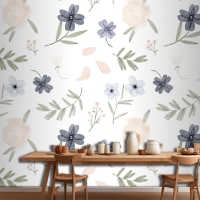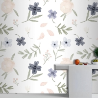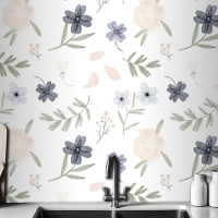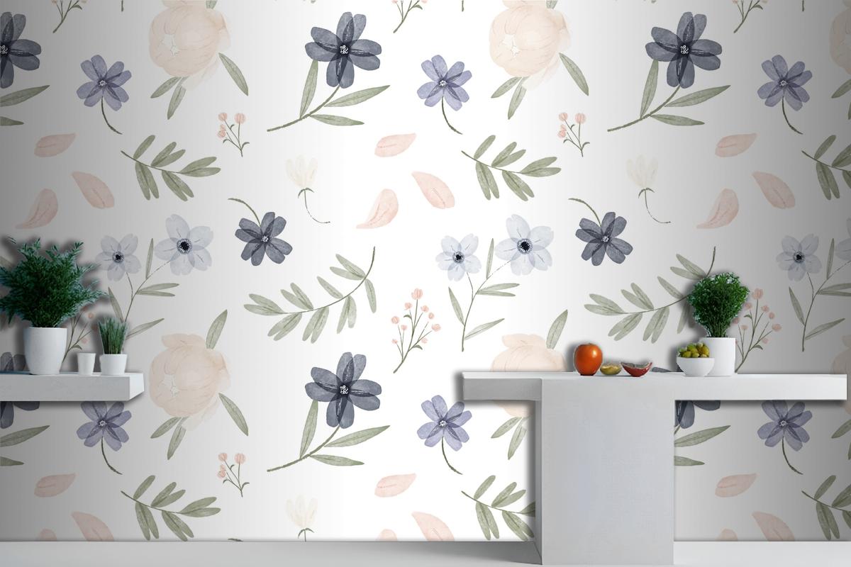 El Boyalı Suluboya Botanik Desenli Mutfak Duvar Kağıdı