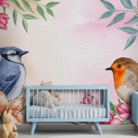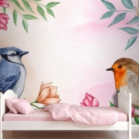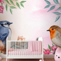 El Boyalı Suluboya Çiçek Kuşlar Arka Plan Çocuk Odası Duvar Kağıdı