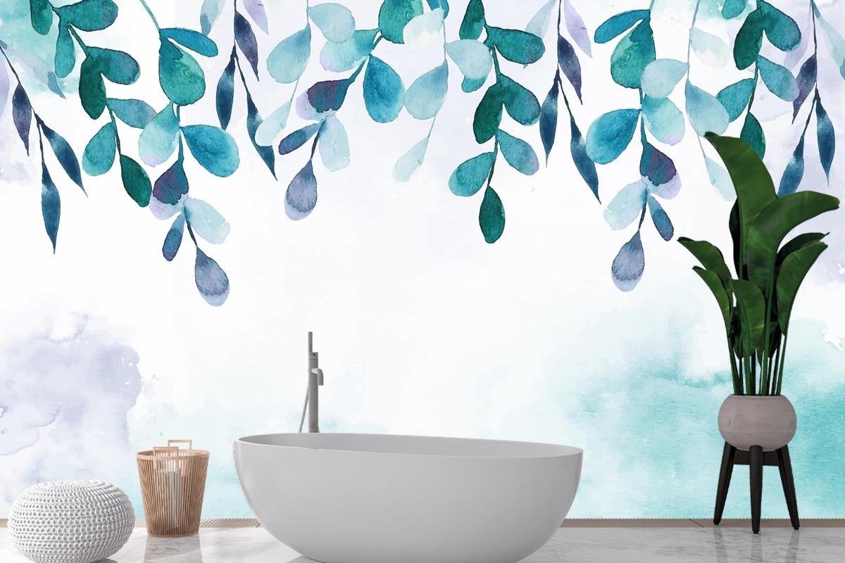 El Boyalı Suluboya Doğa Arka Plan Banyo Duvar Kağıdı
