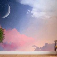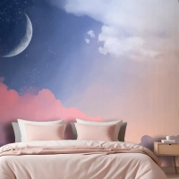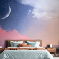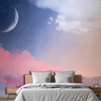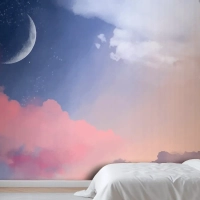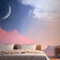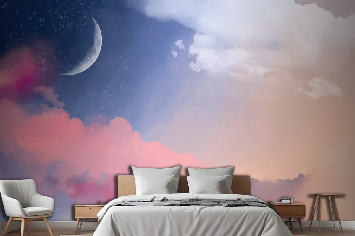 El Boyalı Suluboya Pastel Gökyüzü Yatak Odası Duvar Kağıdı