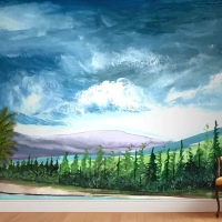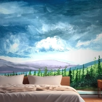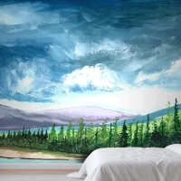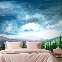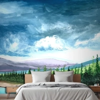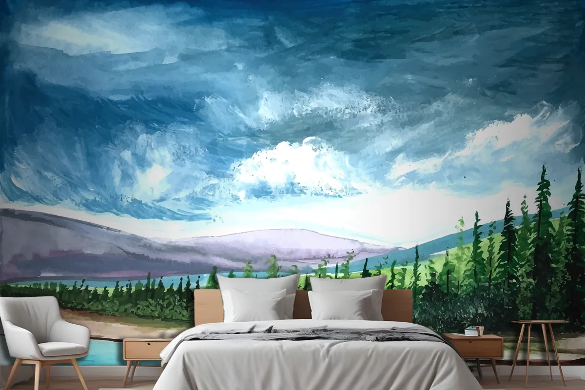 El Çizimi Bahar Manzara Sahnesi Suluboya Yatak Odası Duvar Kağıdı