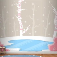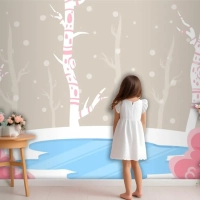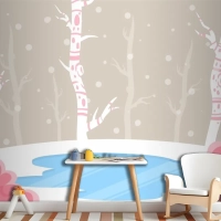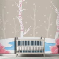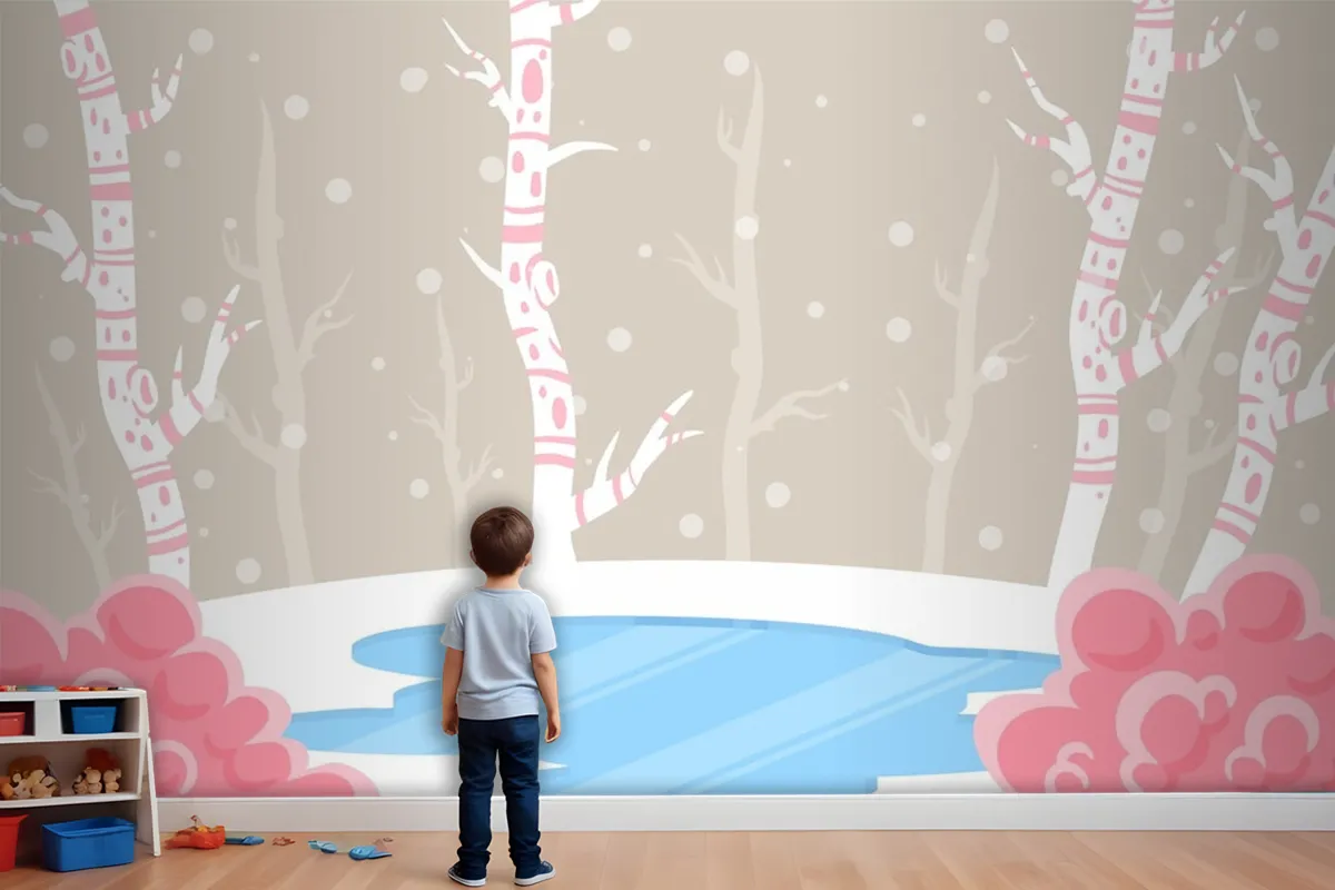 El Çizimi Çocuk Odası Duvar Kağıdı Duvarında Kış Konsepti