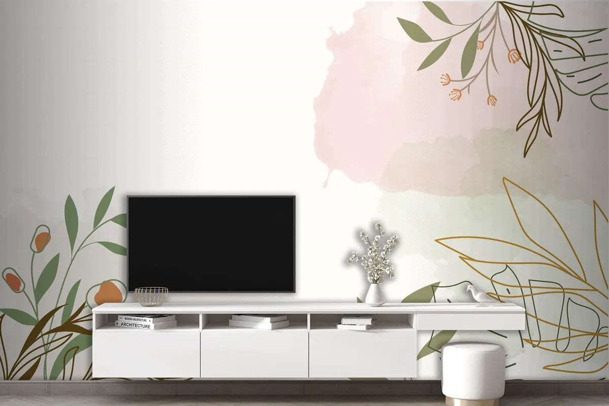 El Çizimi Minimal Suluboya Arka Plan Tv Arkası Duvar Kağıdı