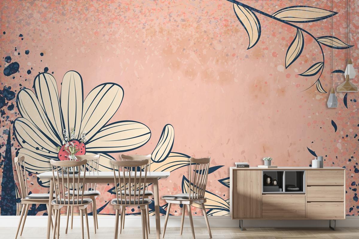 El Çizimi Soyut Çiçek Vintage Duvar Kağıdı