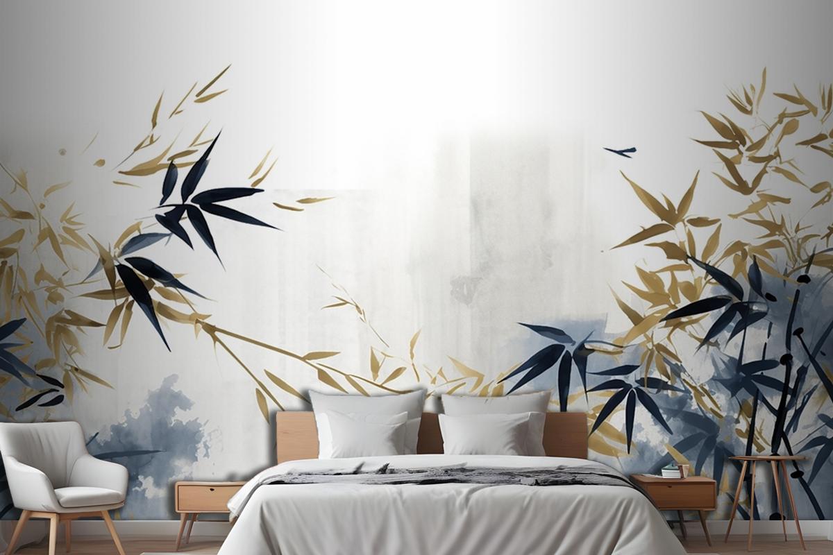 Elle Çizilmiş Bitkiler Tropikal Çiçekler Yapraklar Yatak Odası Duvar Kağıdı