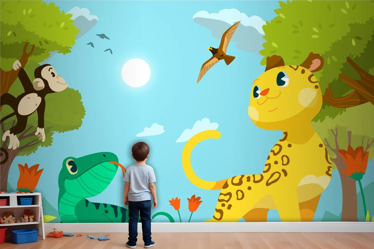 Elle Çizilmiş Biyoçeşitlilik Çocuk Odası Duvar Kağıdı