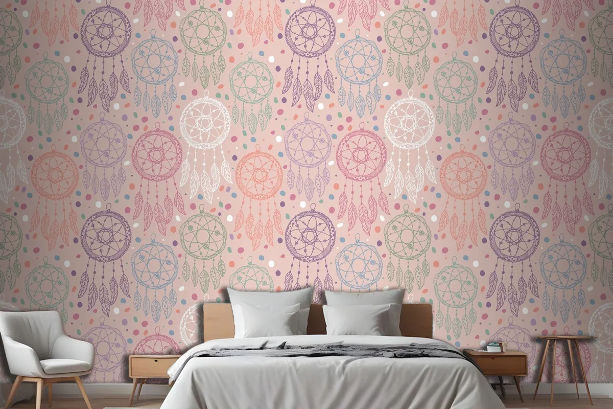 Elle Çizilmiş Boho Desen Tasarımı Yatak Odası Duvar Kağıdı Duvar Gravür