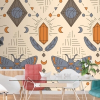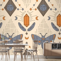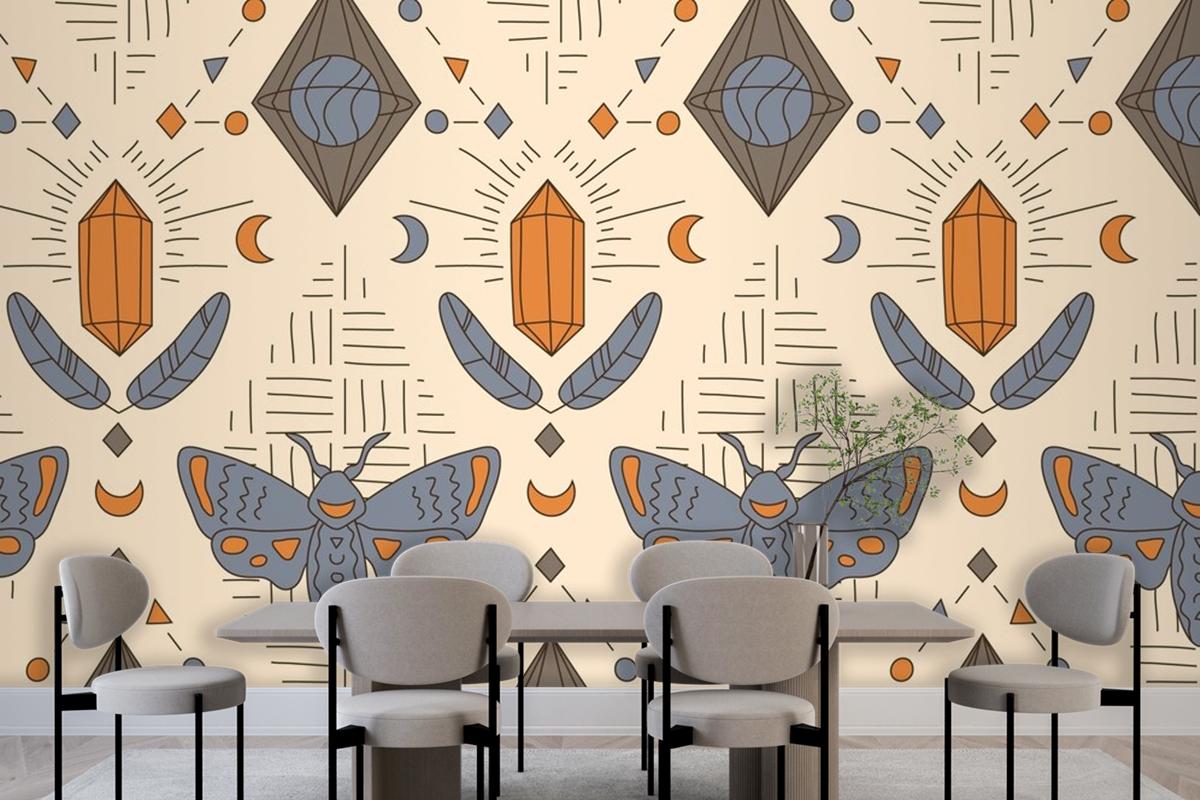 Elle Çizilmiş Boho Geometrik Desen Yemek Odası Duvar Kağıdı