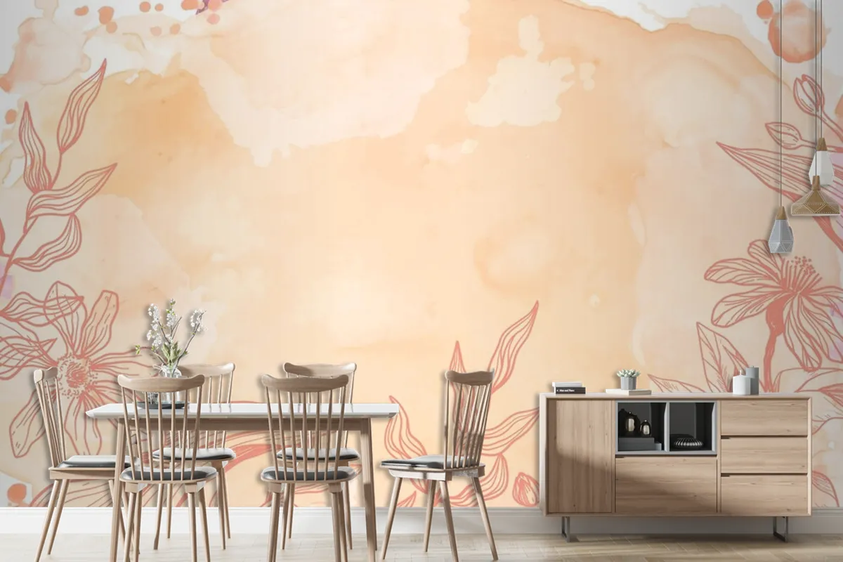 Elle Çizilmiş Çiçekler Arka Plan Duvar Kağıdı Ile Portakal Tozu Pastel