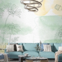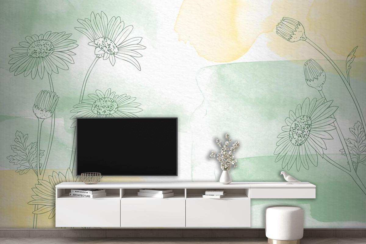 Elle Çizilmiş Çiçeklerle Boyalı Arka Plan Oturma Odası Duvar Kağıdı