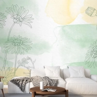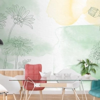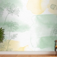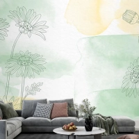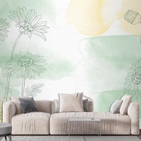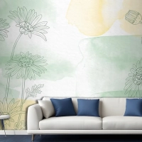 Elle Çizilmiş Çiçeklerle Boyalı Arka Plan Oturma Odası Duvar Kağıdı