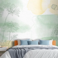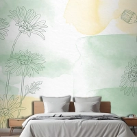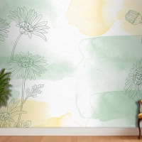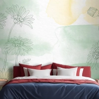Elle Çizilmiş Çiçeklerle Boyalı Arka Plan Yatak Odası Duvar Kağıdı