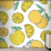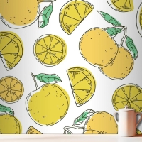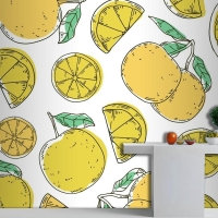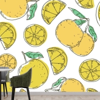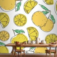 Elle Çizilmiş Çizgisel Oyulmuş Limon Desenli Mutfak Duvar Kağıdı