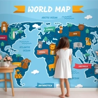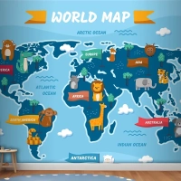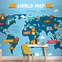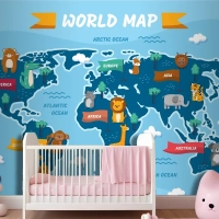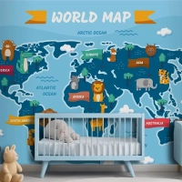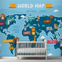 Elle Çizilmiş Çocuk Haritası Çocuk Odası Duvar Kağıdı