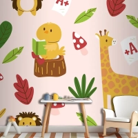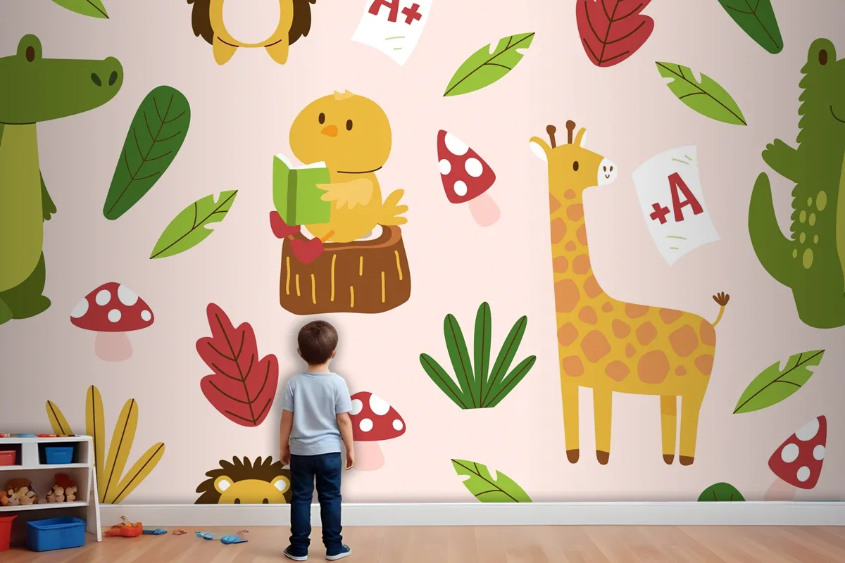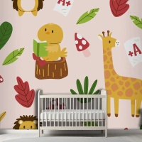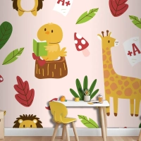 Elle Çizilmiş Çocuksu Hayvanlar Desen Çocuk Odası Duvar Kağıdı