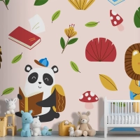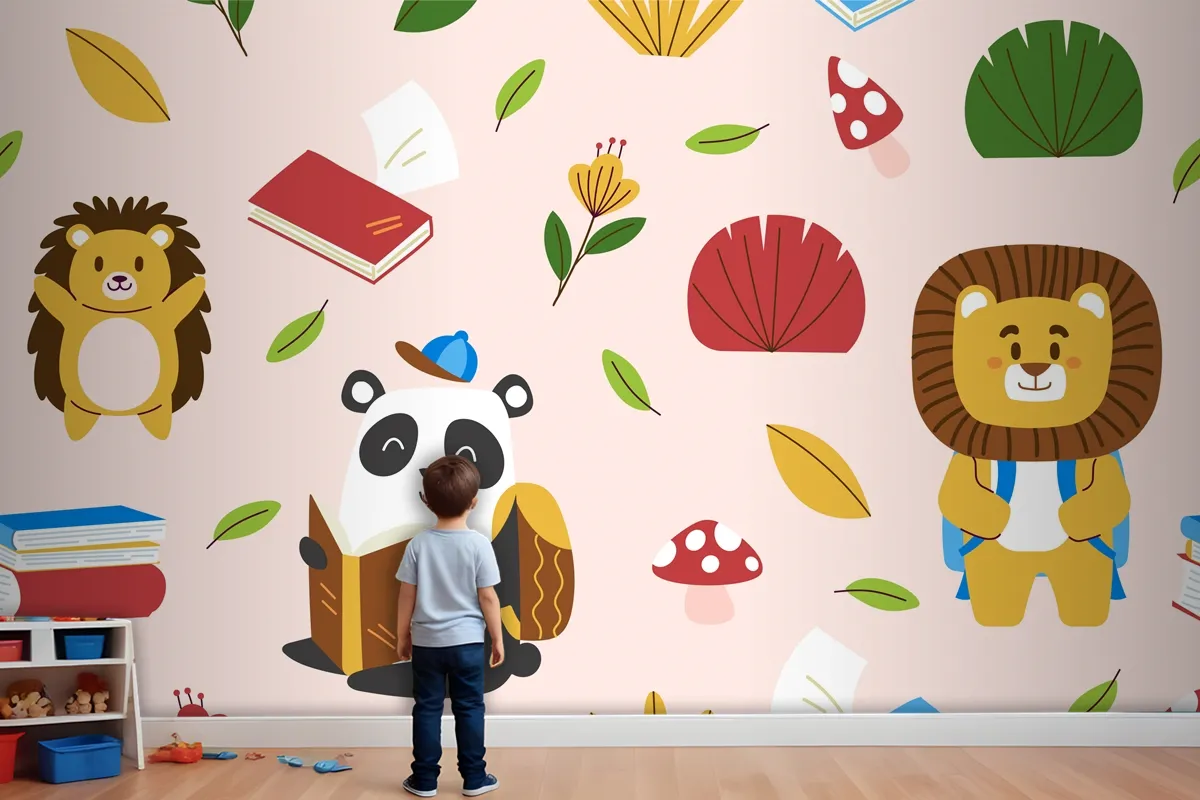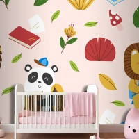 Elle Çizilmiş Çocuksu Hayvanlar Desen Çocuk Odası Duvar Kağıdı