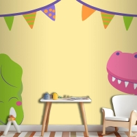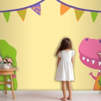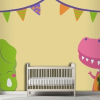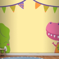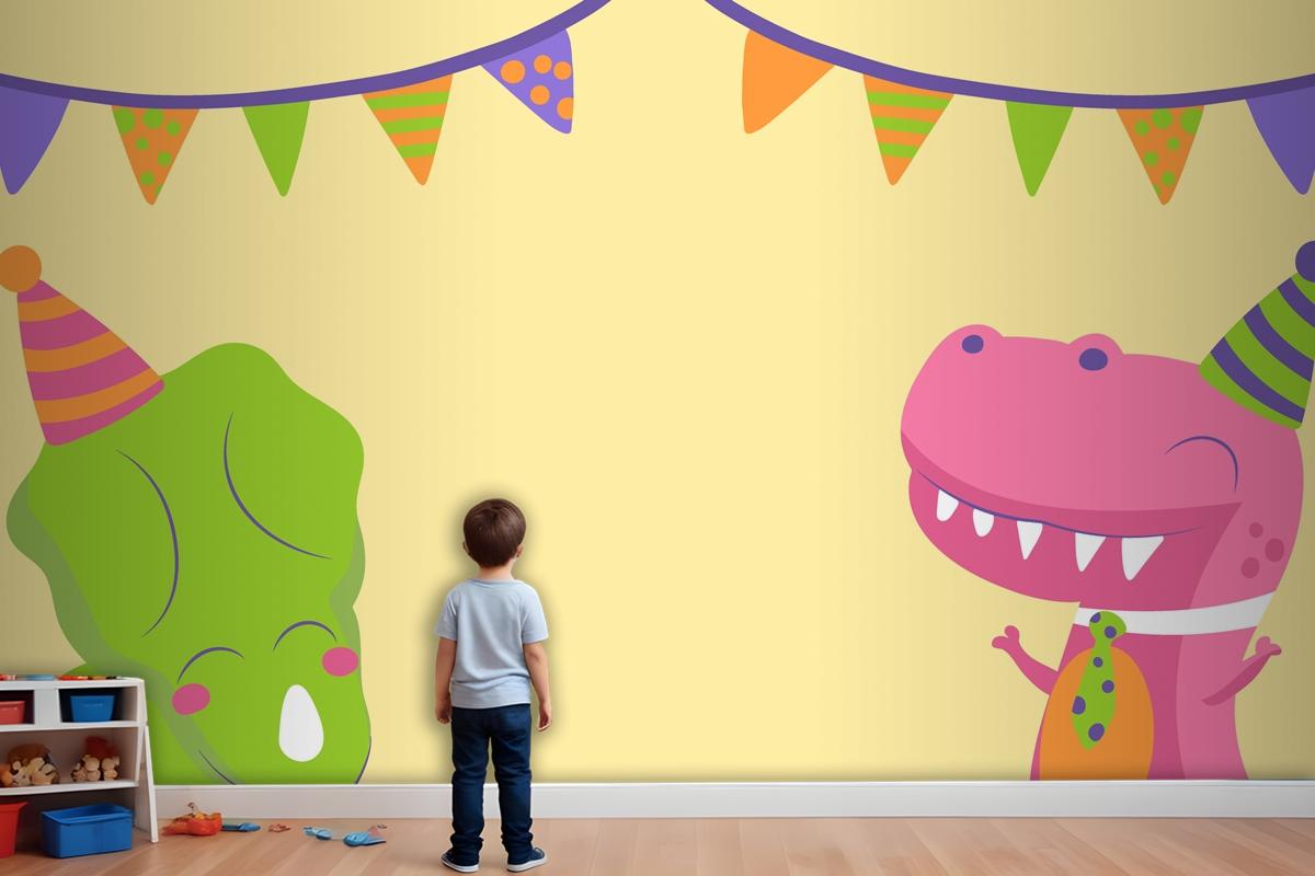 Elle Çizilmiş Dinozor Doğum Günü Yakınlaştırma Çocuk Odası Duvar Kağıdı