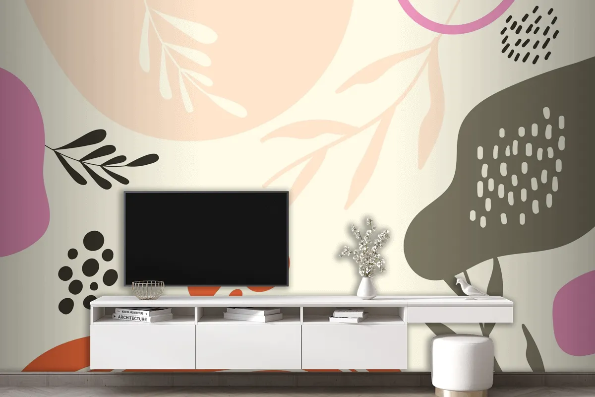 Elle Çizilmiş Düz Tasarım Soyut Doodle Oturma Odası Duvar Kağıdı