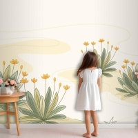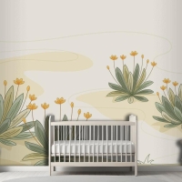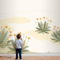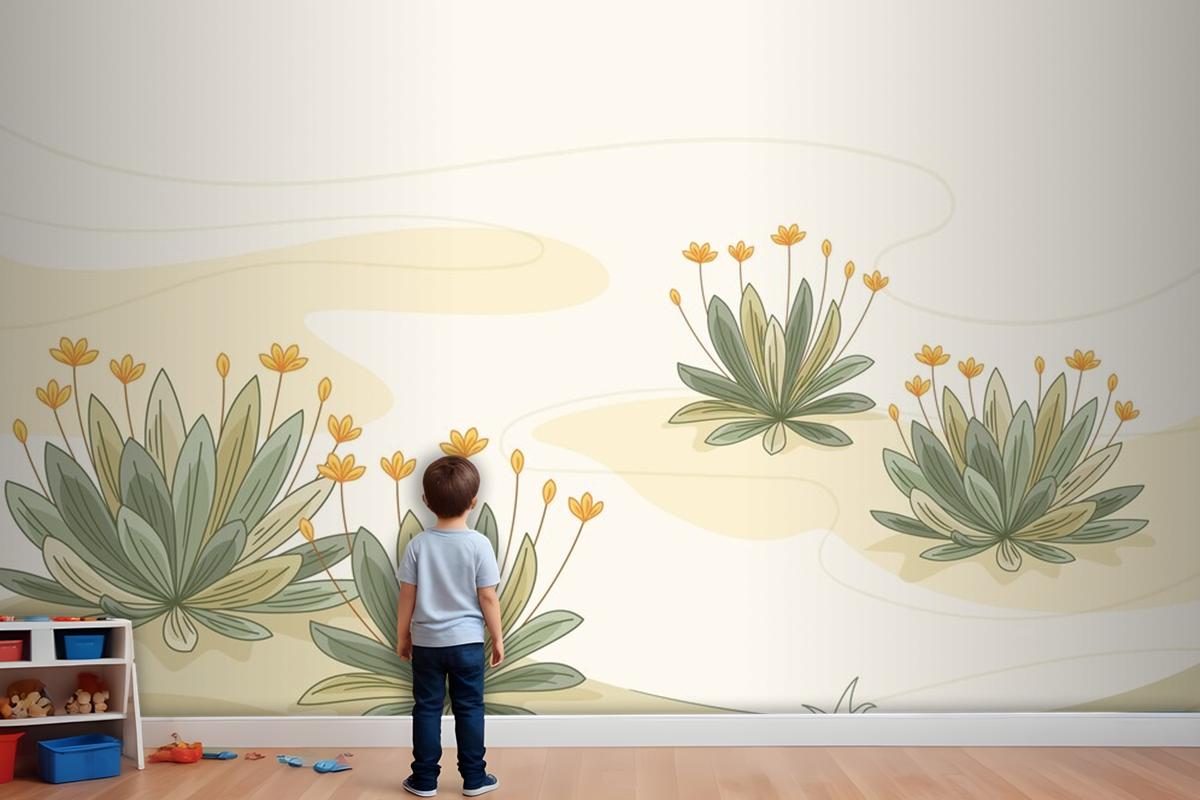 Elle Çizilmiş Frailejon Bitki Arka Plan Çocuk Odası Duvar Kağıdı