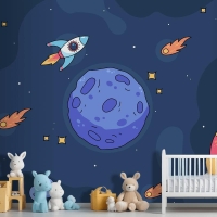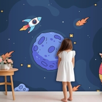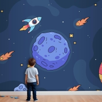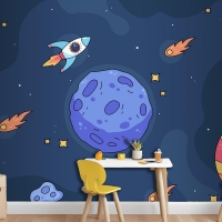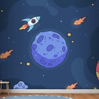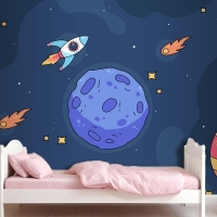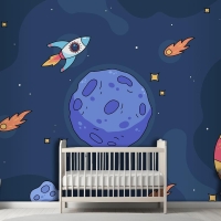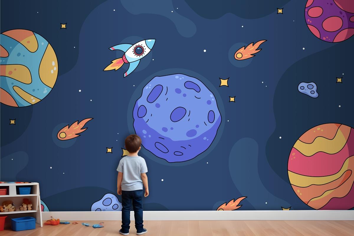 Elle Çizilmiş Galaxy Çocuk Odası Duvar Kağıdı