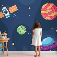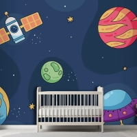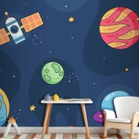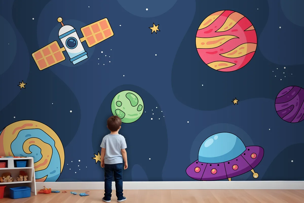 Elle Çizilmiş Galaxy Çocuk Odası Duvar Kağıdı