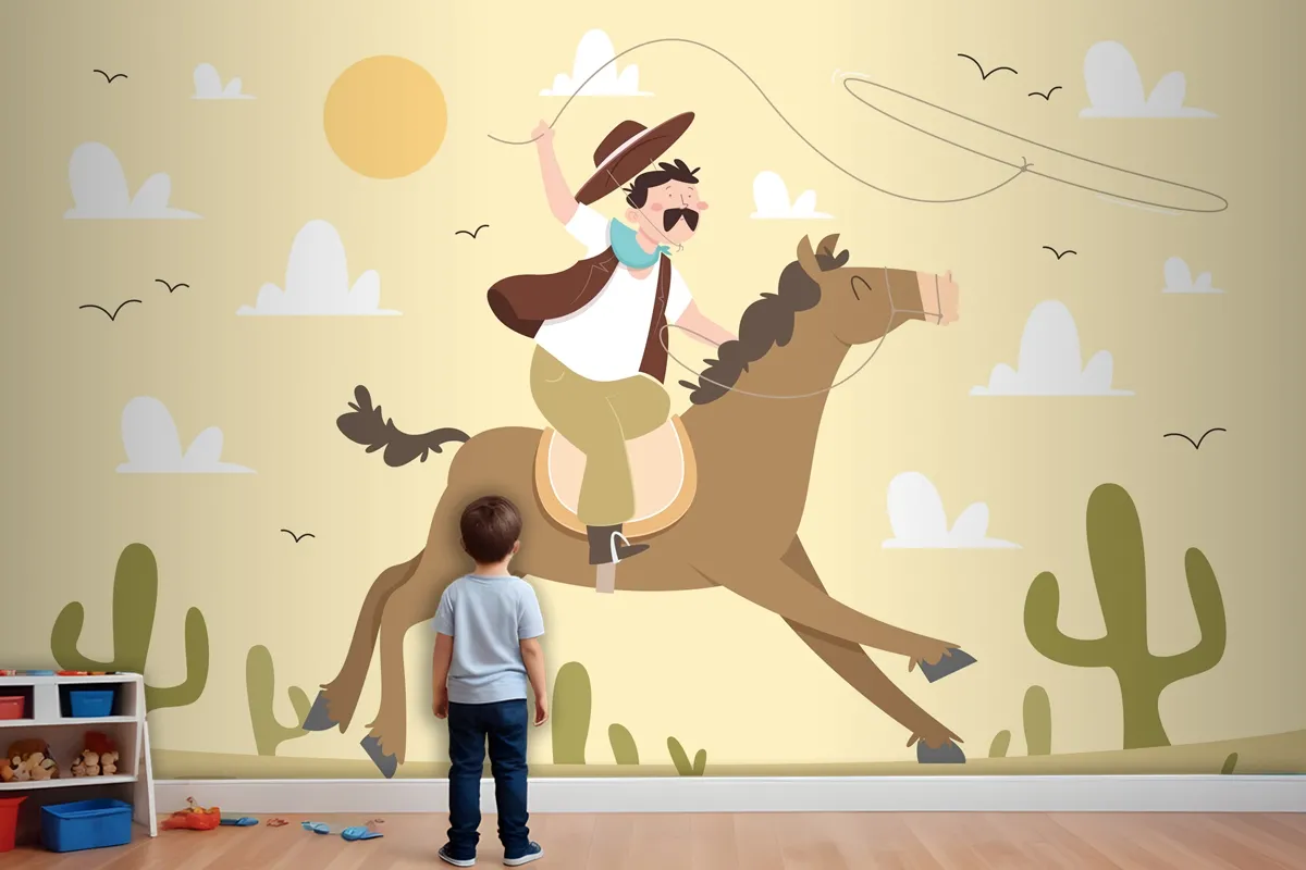 Elle Çizilmiş Gaucho Arka Plan Çocuk Odası Duvar Kağıdı