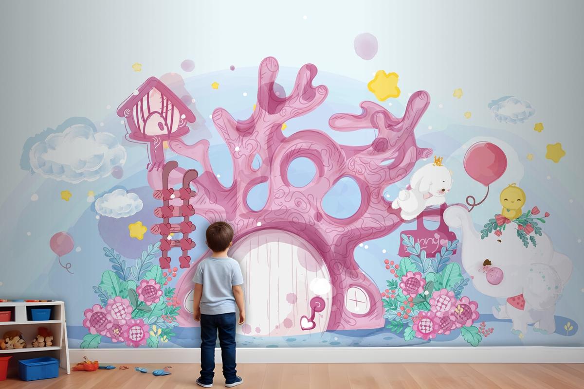 Elle Çizilmiş Geçit Töreni Doodle Hayvanlar Çocuk Odası Duvar Kağıdı