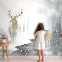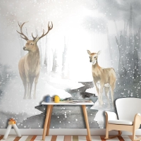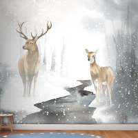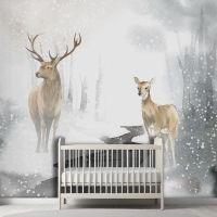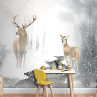 Elle Çizilmiş Geyik Çifti Suluboya Tarzı Çocuk Odası Duvar Kağıdı